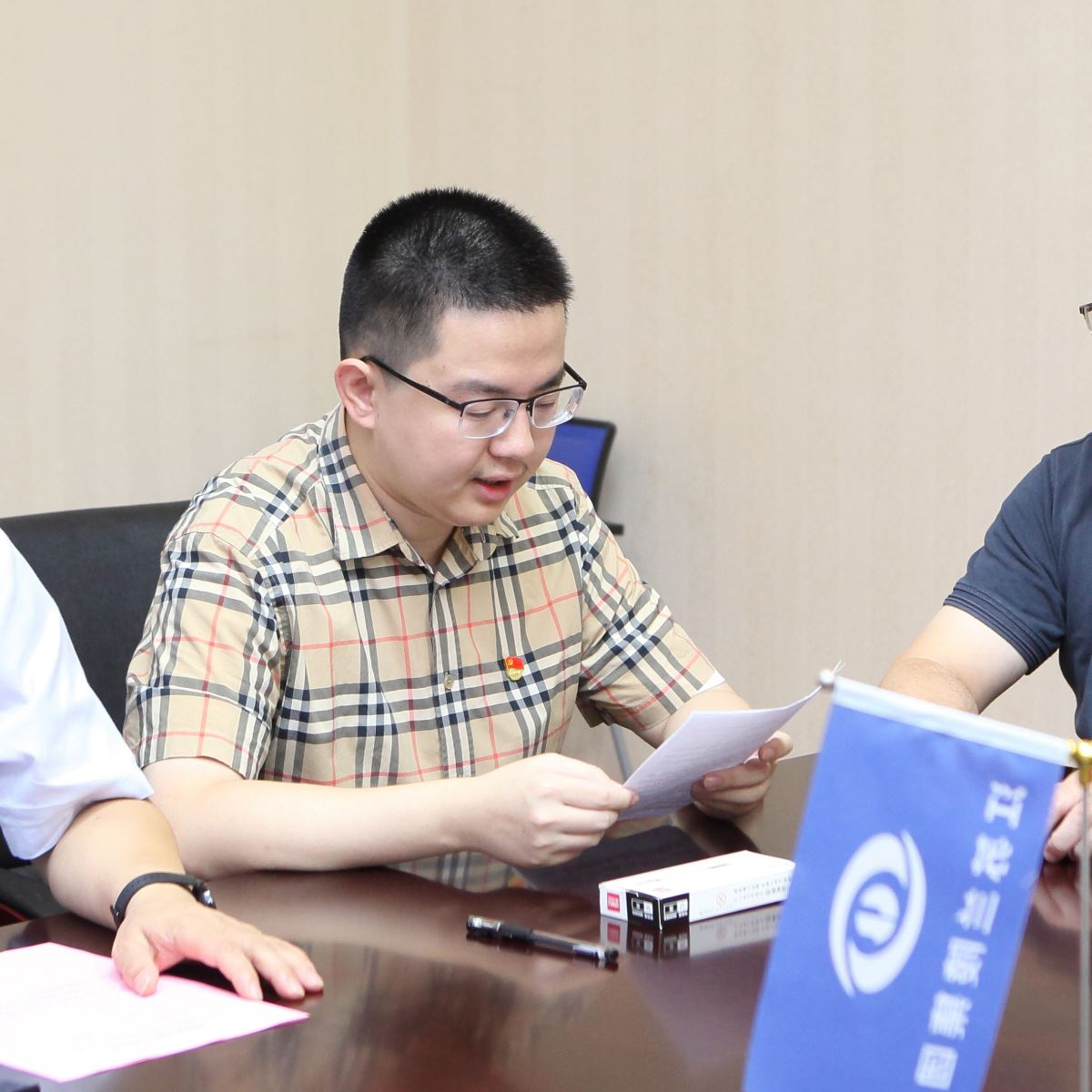 會上各支部分組進(jìn)行了接收預(yù)備黨員及預(yù)備黨員轉(zhuǎn)正的表決流程,其中行政支部接收奚植楊同志為預(yù)備黨員,企業(yè)支部接收徐征同志、顧科毅同志為預(yù)備黨員,轉(zhuǎn)正高晨陽同志為正式黨員。